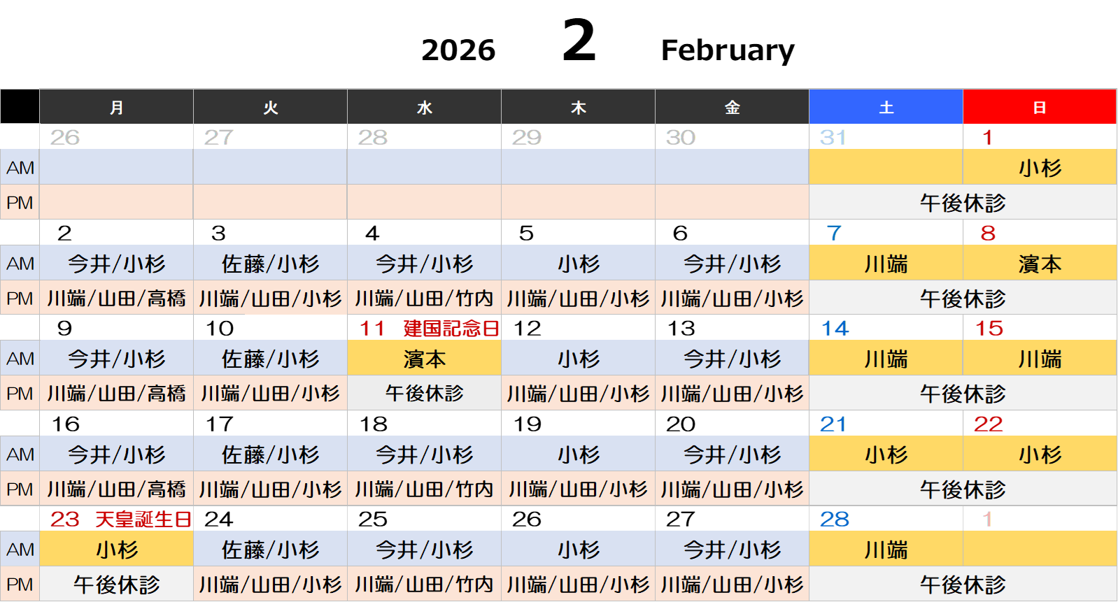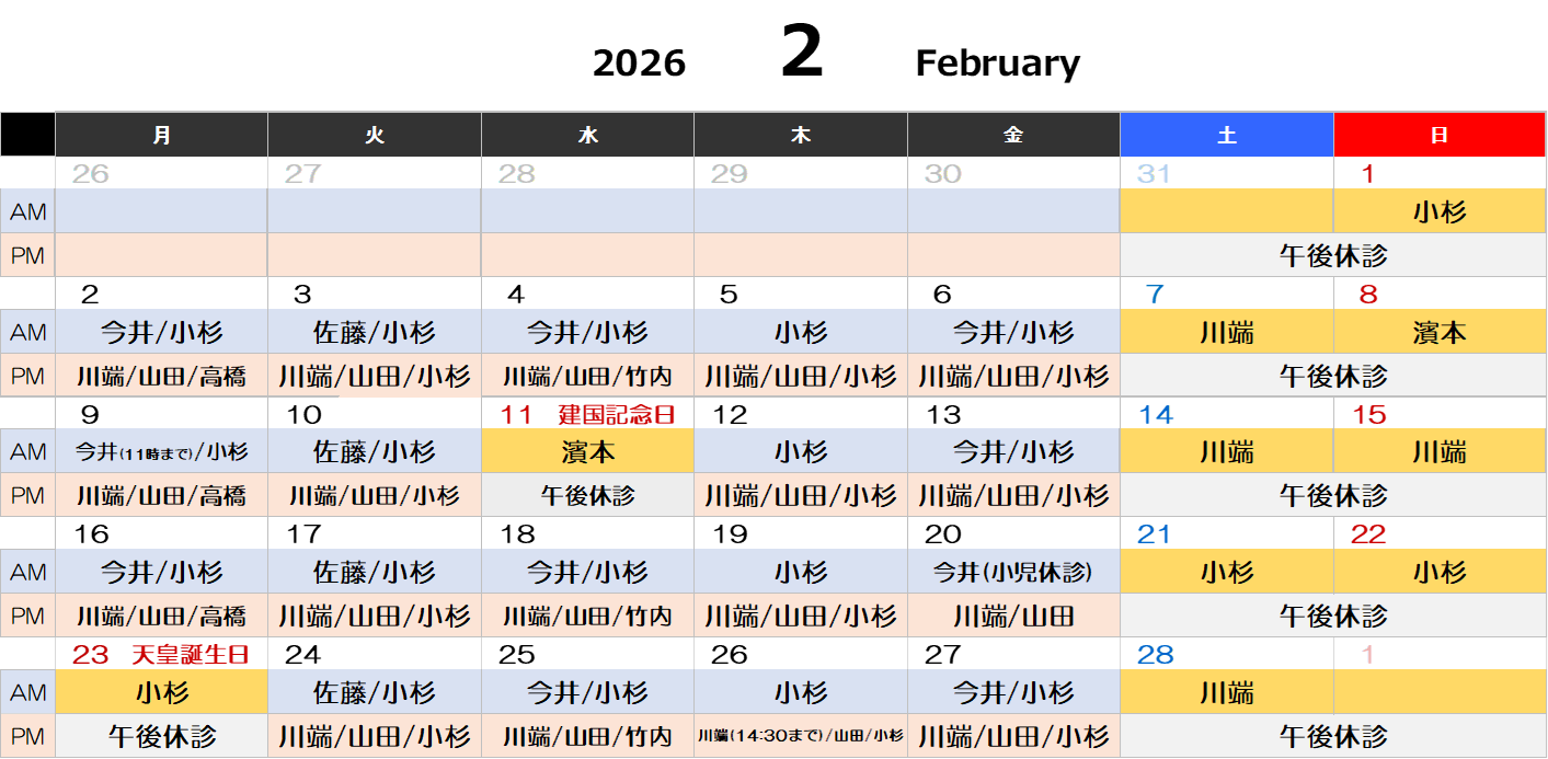 ※医師の休診予定は「新着情報」にてご確認ください。