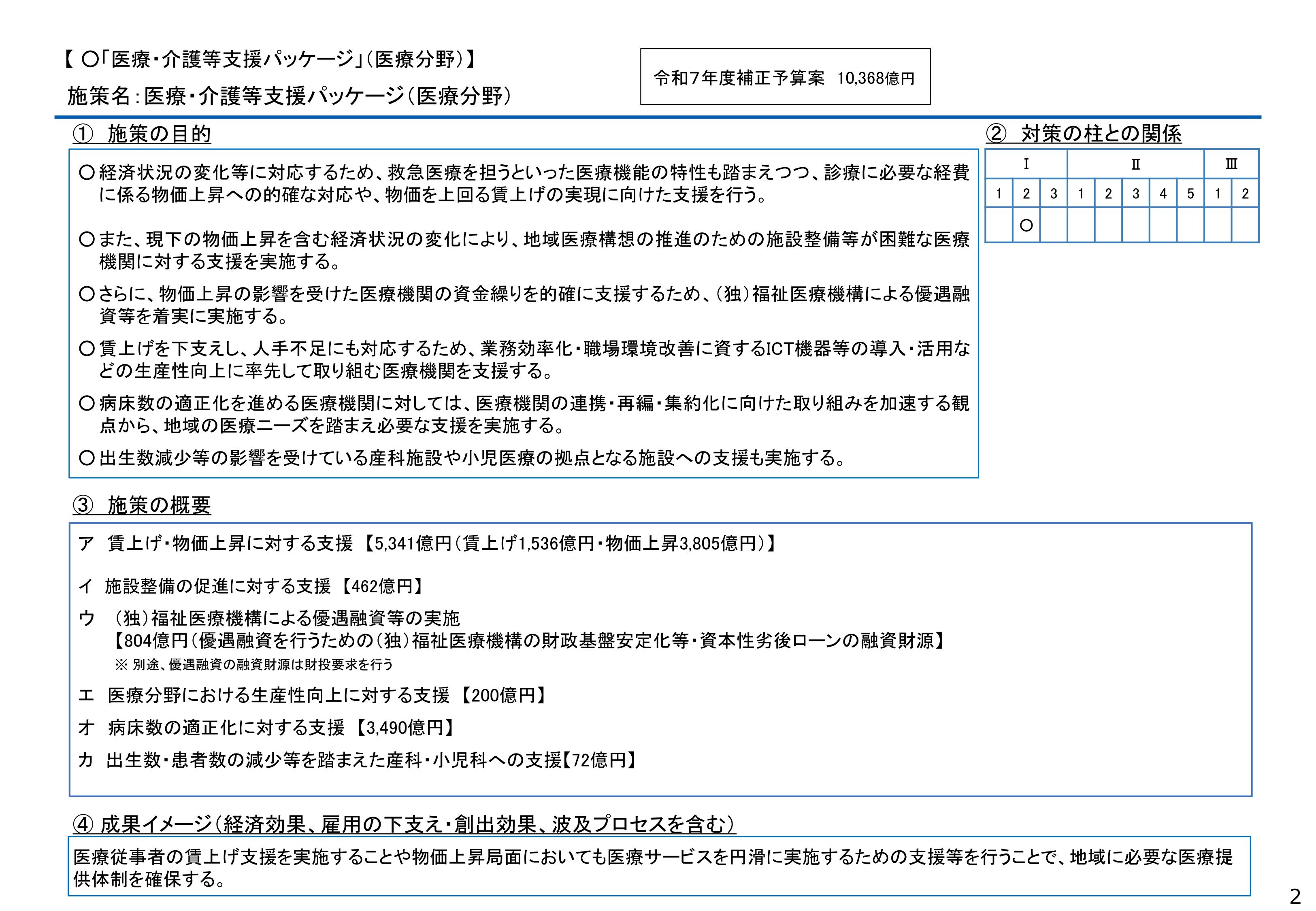 補正予算でどのような支援を国は医療現場に行うのか、一緒に確認しましょう【 令和7年度 補正予算案の主要施策集より】