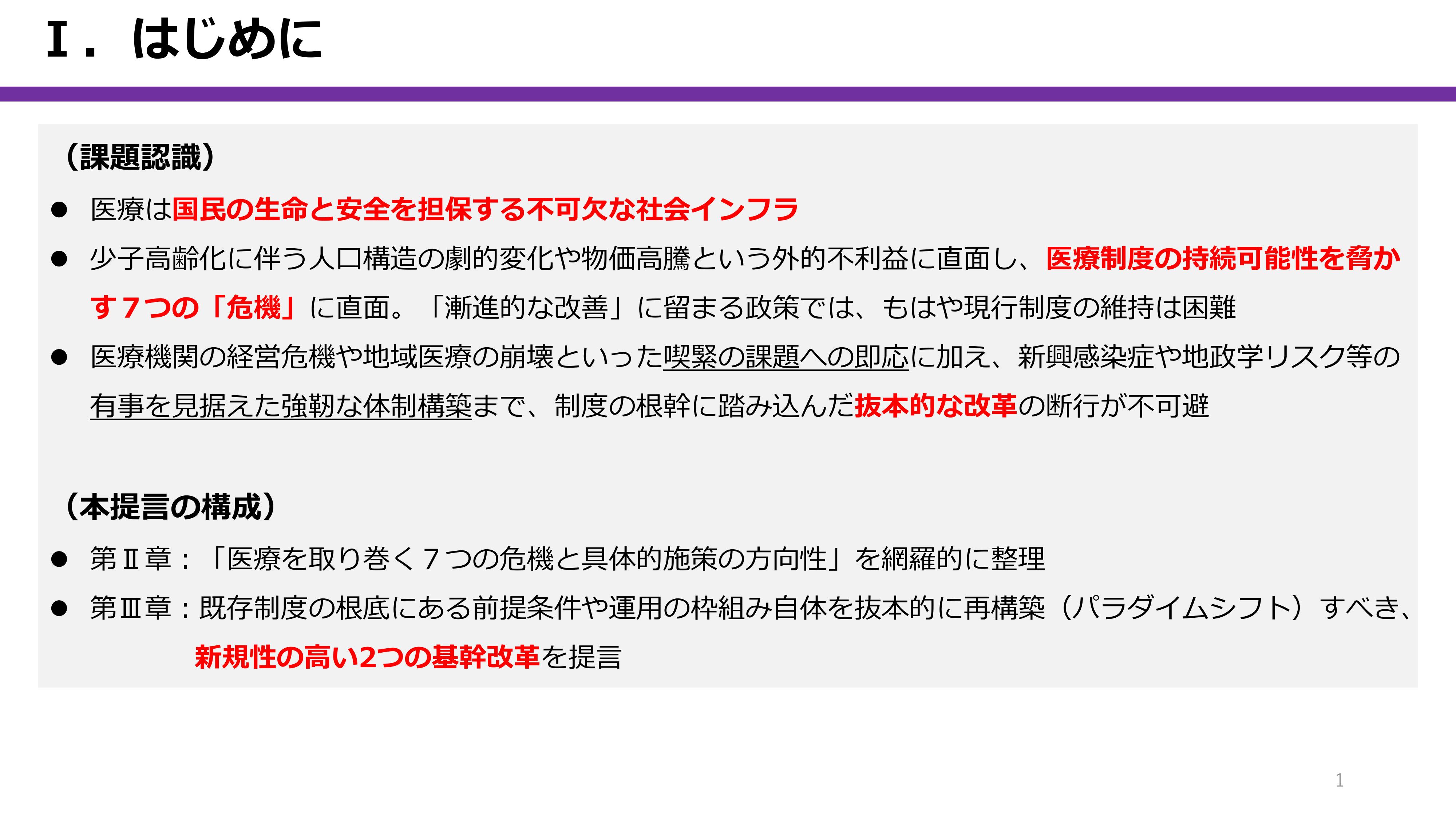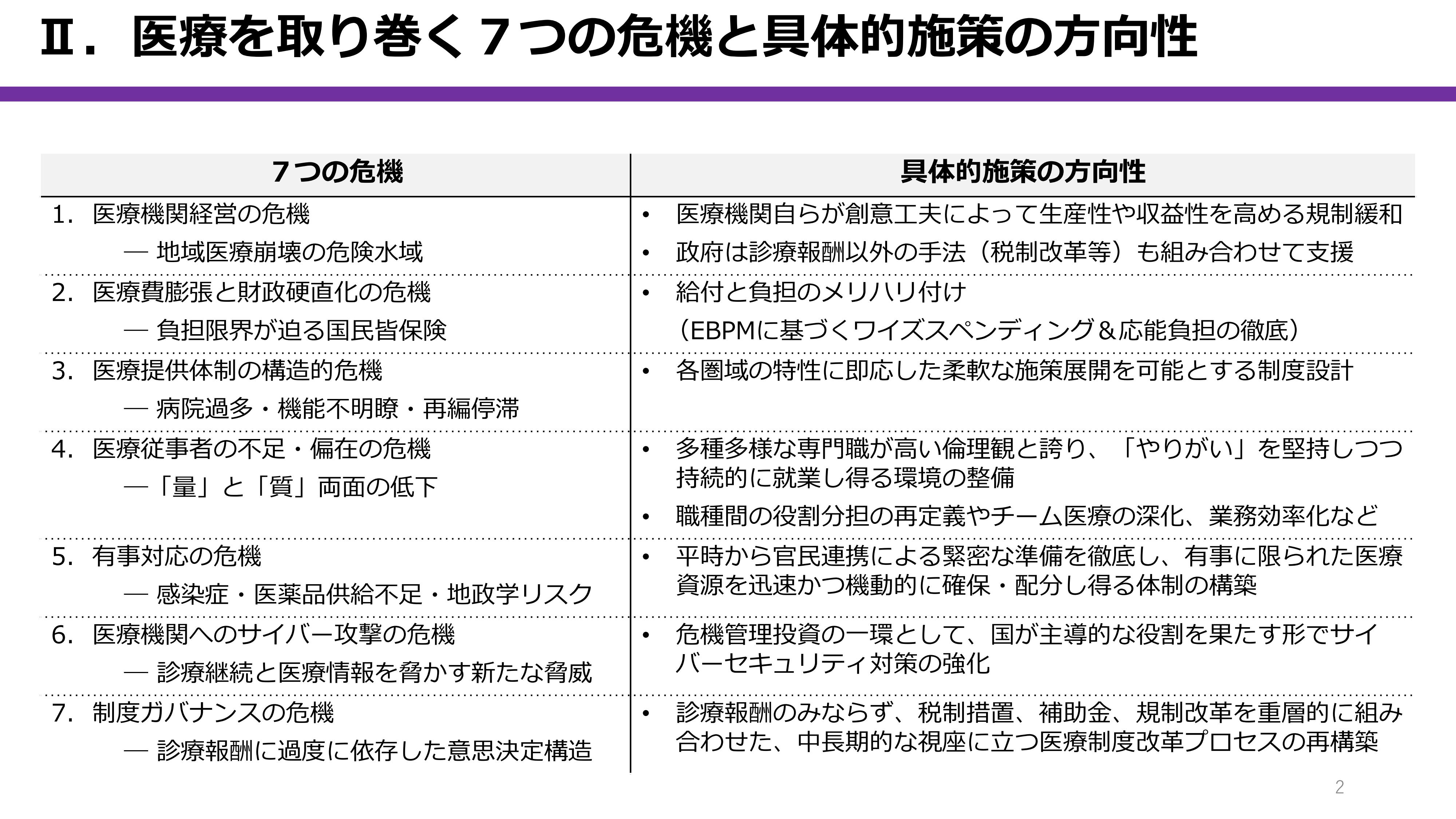 資料提供:持続可能で強靱な医療システムへ ~7つの危機に立ち向かう2つの改革~